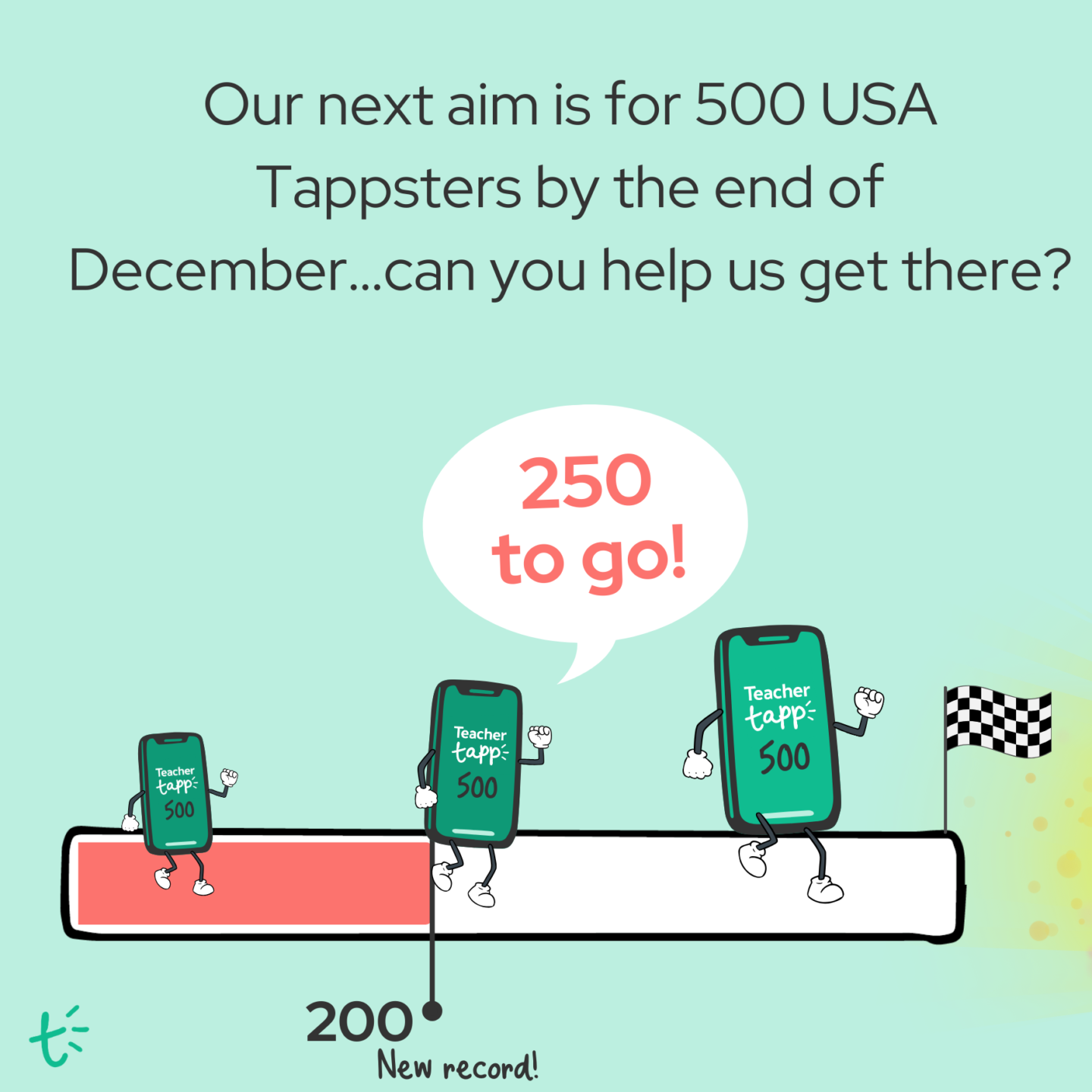 Our next aim is to get to 500 USA Teacher Tappers by the end of December – can you help us get there?