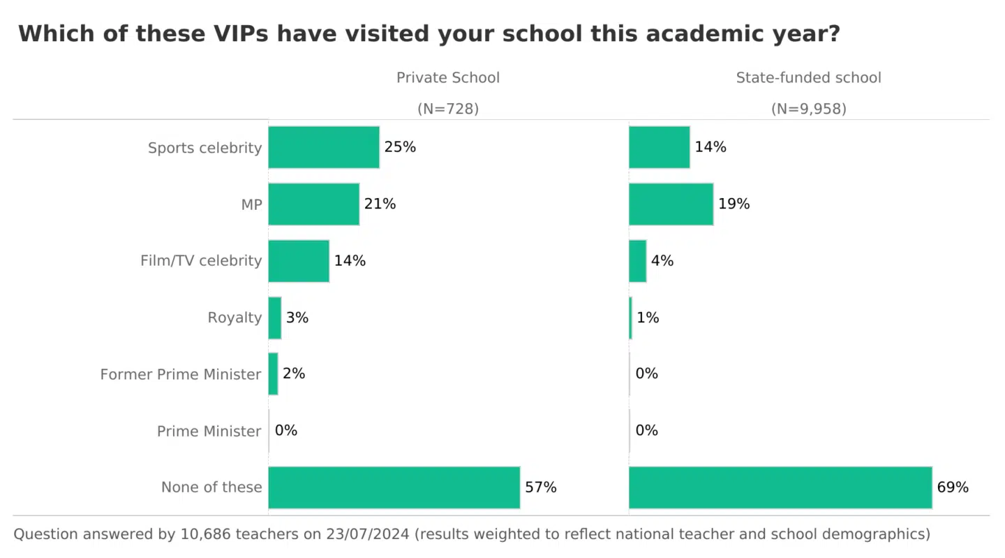 ⚽️🏀🏉 While 14% of teachers in state schools were visited by a sports celebrity, 25% of private school teachers could say the same.