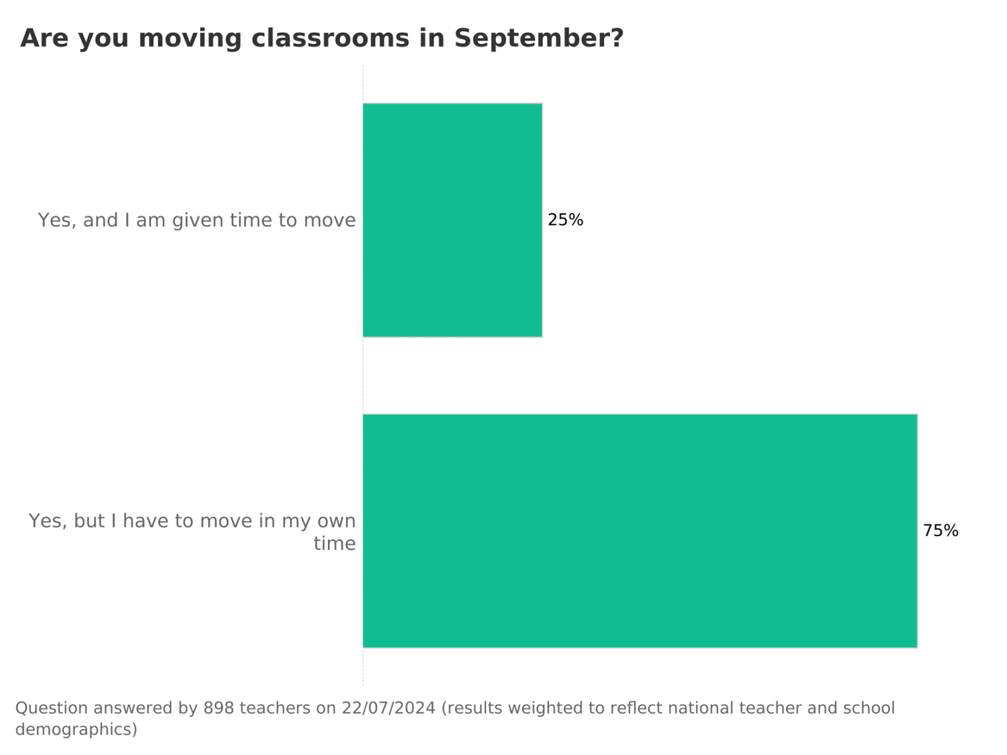 898 teachers told us they are packing and repacking for a fresh start in September. Of those, 75% will be doing the hard work in their own time, but 25% have been given time to do the big relocation.