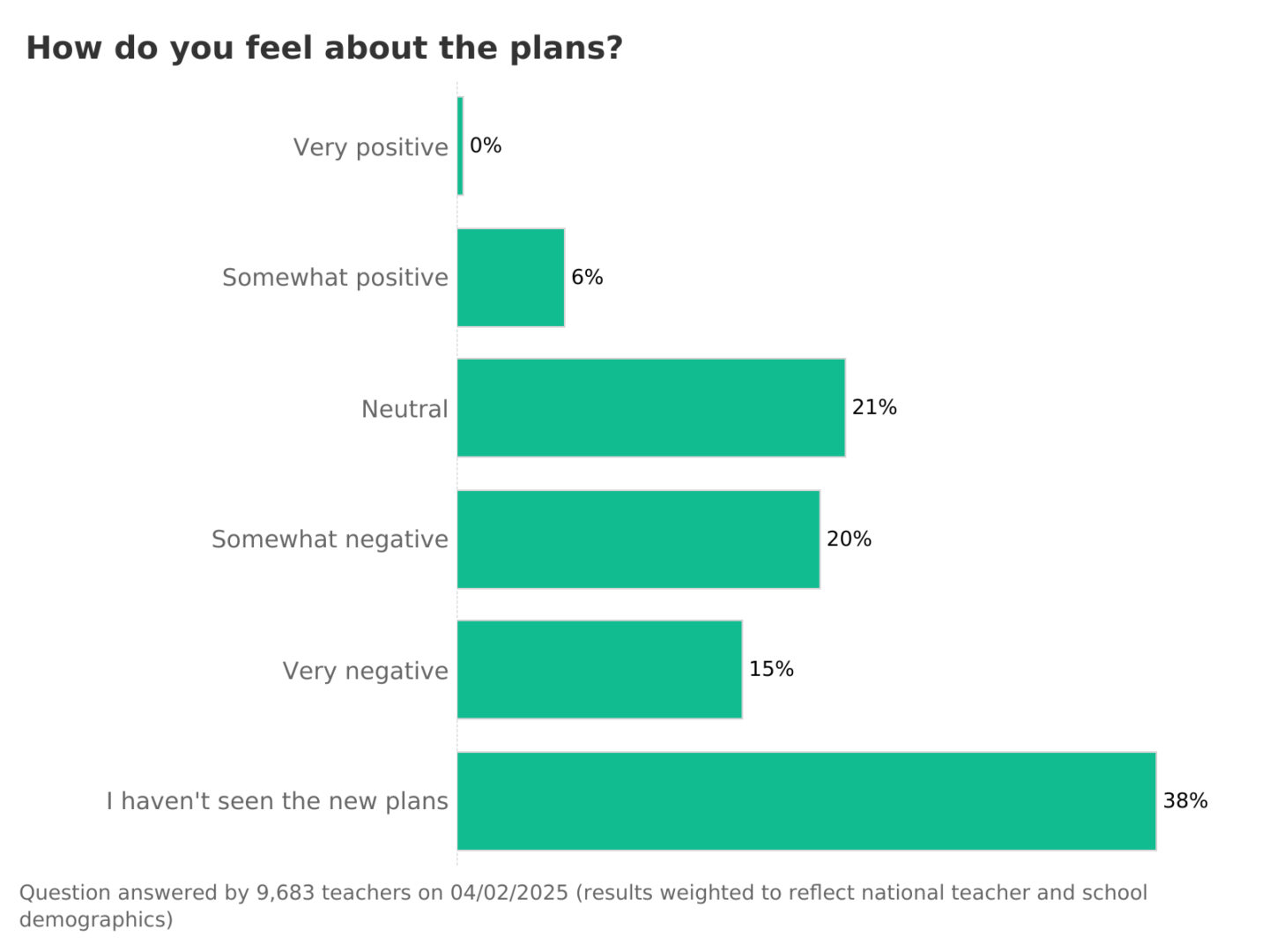 Headteachers were the most likely to have read the plans, but also the most likely to feel negatively about the reforms: 43% feel ‘very negative’ and 24% ‘somewhat negative’.