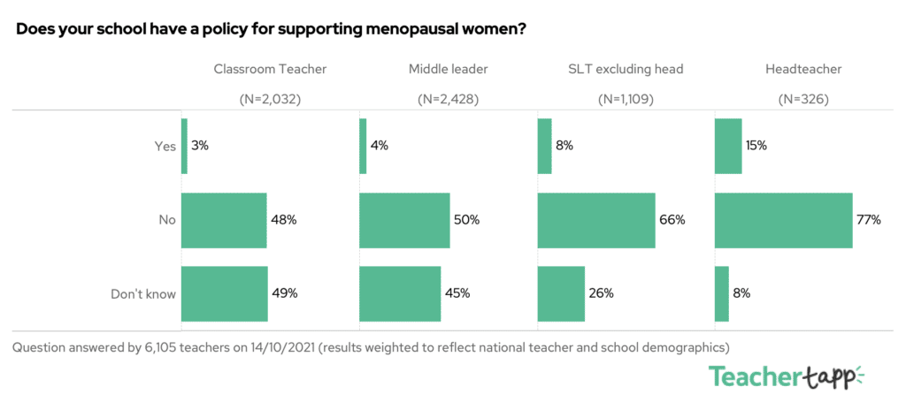Only 5% of you said that your school had a policy for supporting menopausal women, although many of you didn’t know whether a policy like this existed in your school!