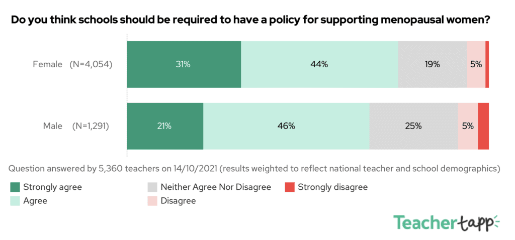 Requiring a policy to support menopausal women is popular among both genders of teachers.
