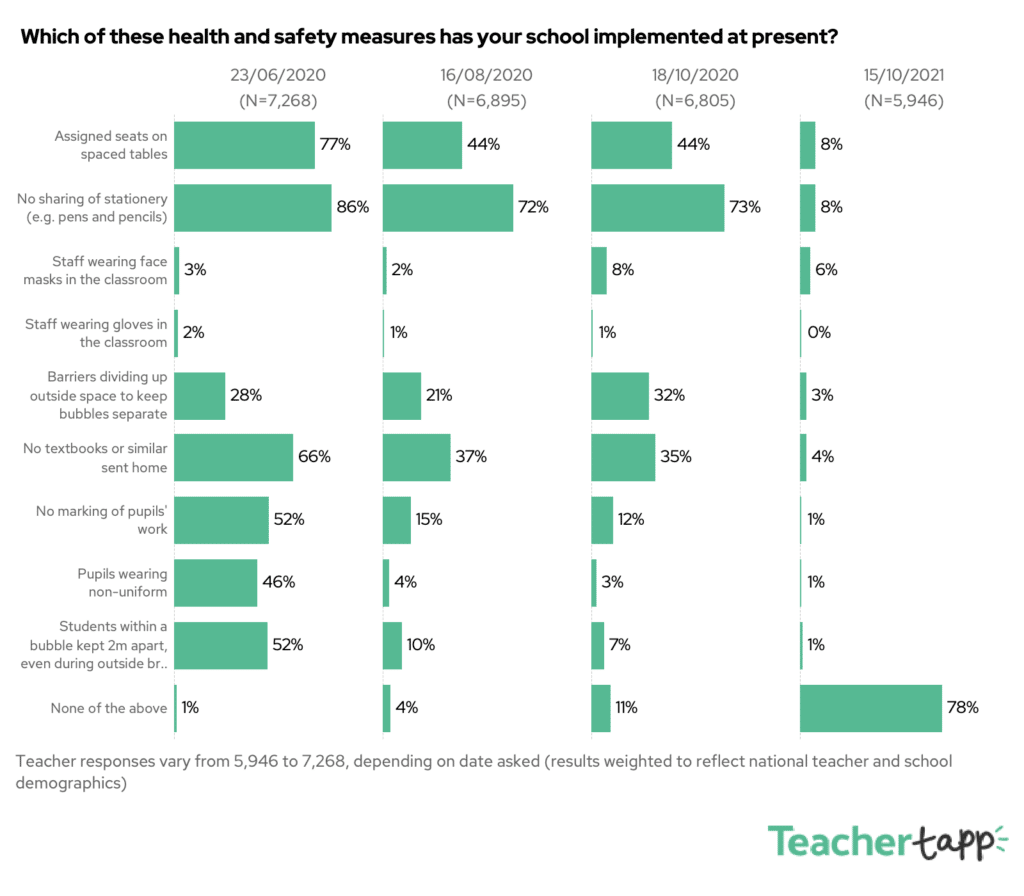 That hasn’t stopped many of you trying to go back to normal for your health and safety measures this term! Nearly 80% of you said that you had stopped implementing any of the measures that have recently become commonplace.
