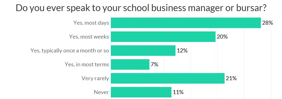 In any given week, you told us that around half of you will speak with your school business manager. But a further 32% of you rarely/never speak to them.