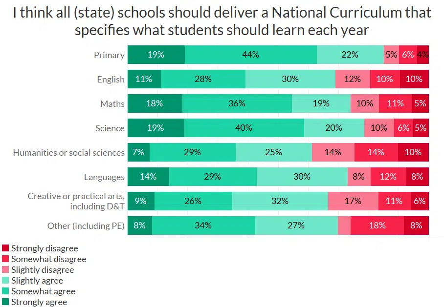 All this said, all subjects had more teachers in favour of a year-on-year specified curriculum than against it.