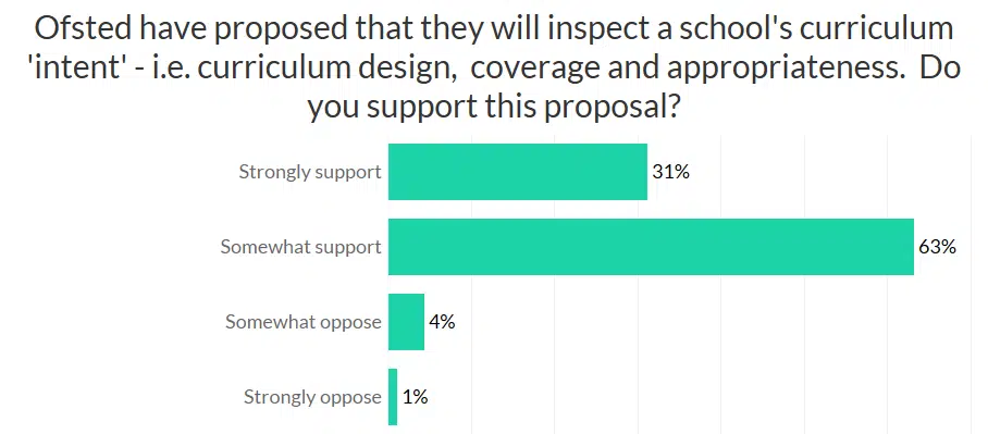 While we are on the topic of Ofsted and curriculum, how popular is their new plan to inspect a school’s curriculum ‘intent’ – i.e., the curriculum design, coverage and appropriateness?