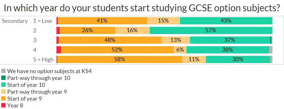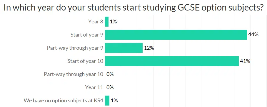 Last year we found that most schools start GCSE courses in Year 9. This year, we’ve found the same trend.