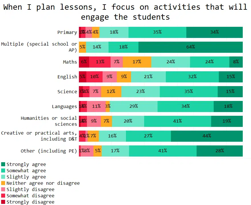 We used ‘focus’ in the question as a way of seeing if people take into consideration this aspect of learning when planning lessons.