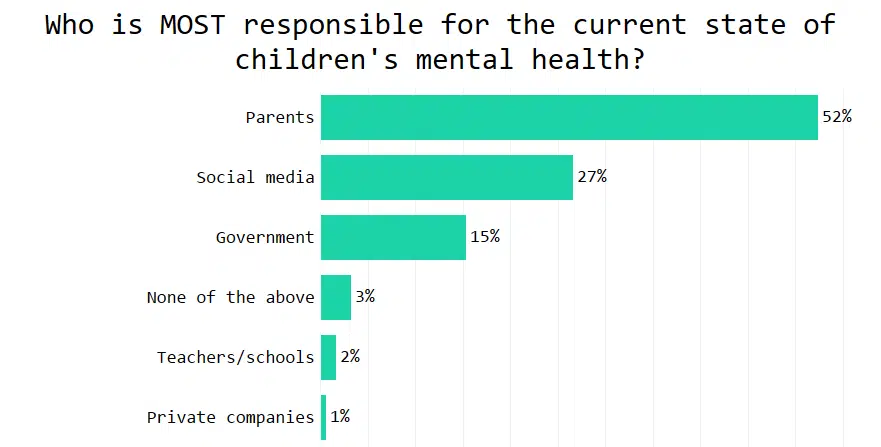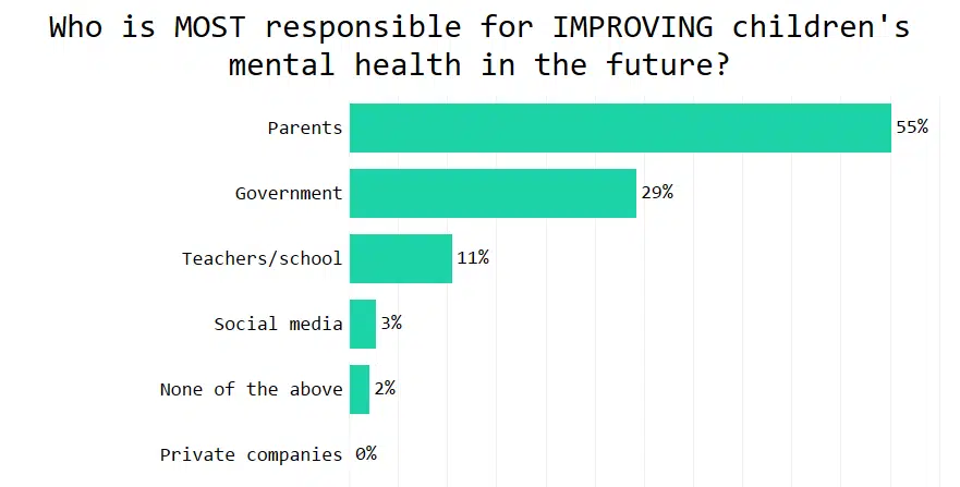 Note also the negativity towards social media, who are blamed for the current state by a significant proportion of teachers, yet only 3% see it having a role in improving mental health.