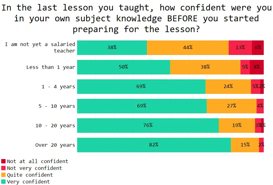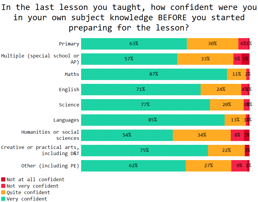 We also found a difference among teachers of different subjects, with primary and humanities teachers the least confident before preparing for their lesson.