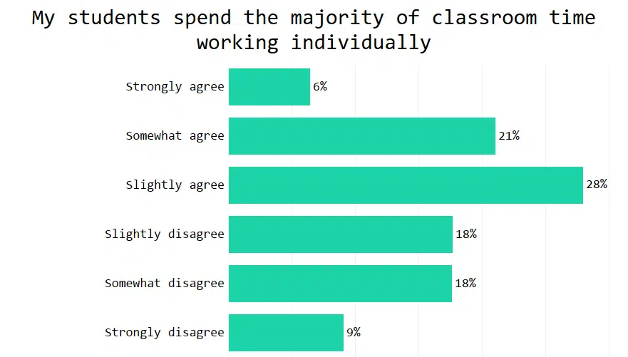 We asked a different question, which looked instead at how often pupils are working individually and for the majority of the time: