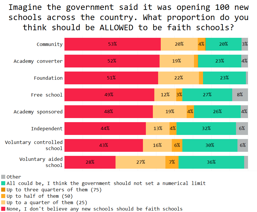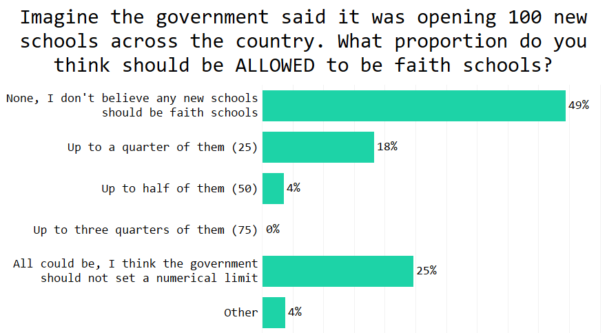 We therefore created a scenario to tease out people’s feelings about the proportion of new schools that could be faith-ethos.