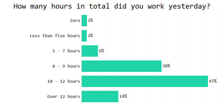 10-12 hours is very common answer, although when we ask about Fridays it reduces to 8-9 hours. (Weekend – yaaay!)