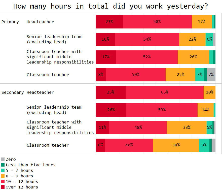 However, we’ve noticed something in these hours. Headteachers are most likely to report the most brutal working days.