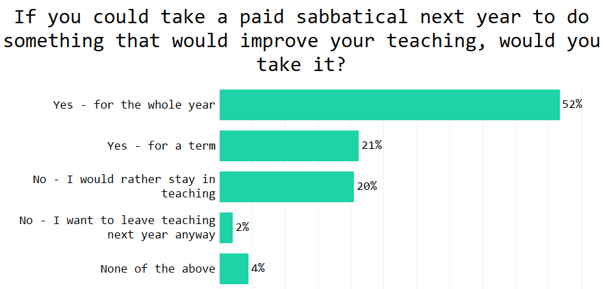 Worryingly popular! Just 20% of teachers said they would rather stay in teaching than take the sabbatical – eep!