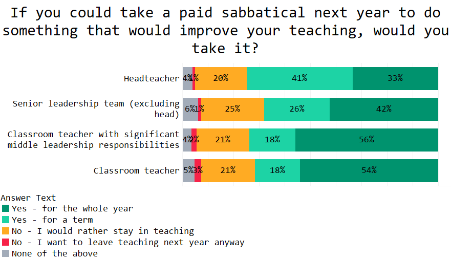 Classroom teachers were also more likely to say they’d sabbatical than senior leaders. (Yes, we verbed that).