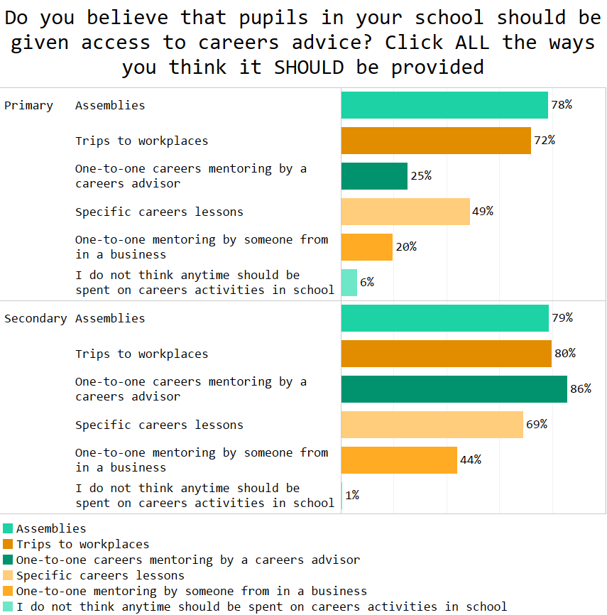 Only 6% of primary teachers, and 1% of secondary teachers, felt NO time at all should be spent on careers.