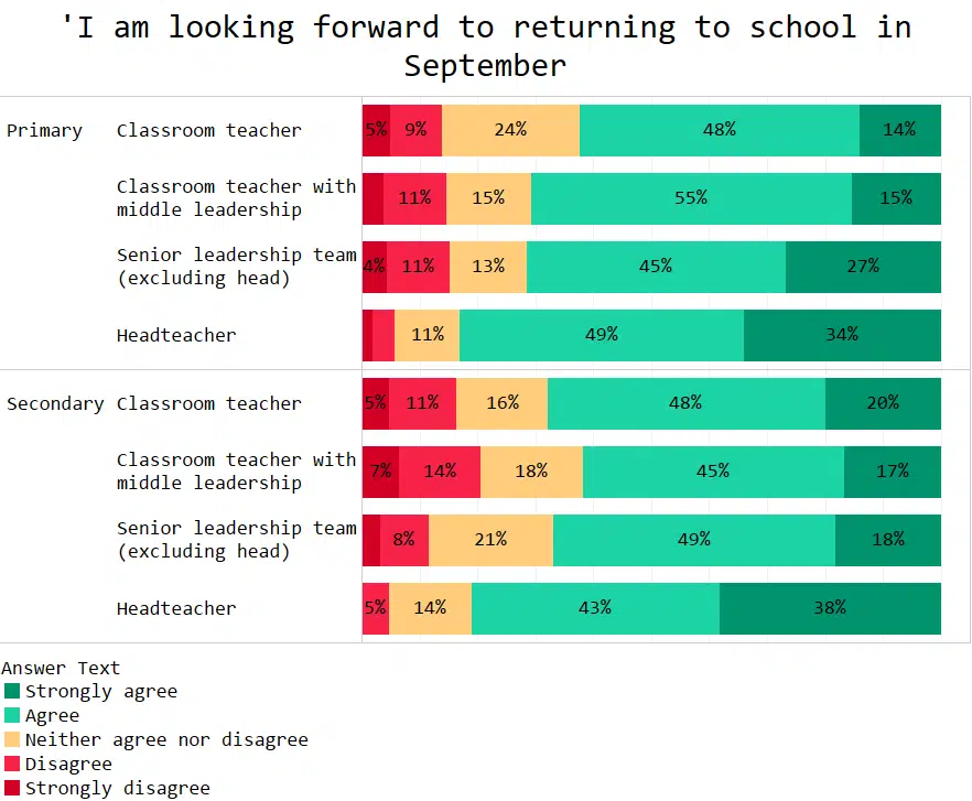 Note that headteachers are the most excited about returning to school. Though this isn’t surprising when you realise they are perennial swots.