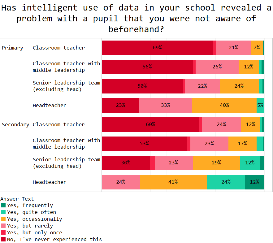 The people who most learn about pupils problems from data are senior leaders and headteachers. Probably because they aren’t in classrooms doing most of the teaching.