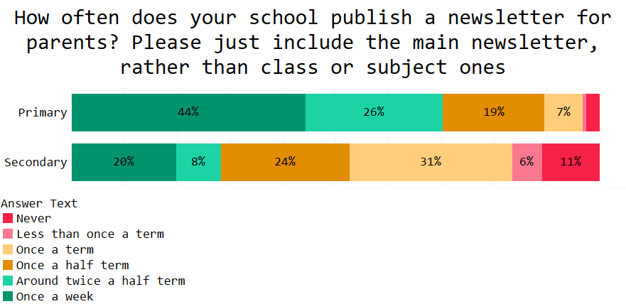 Note the massive difference between how often primary and secondary schools publish newsletters.