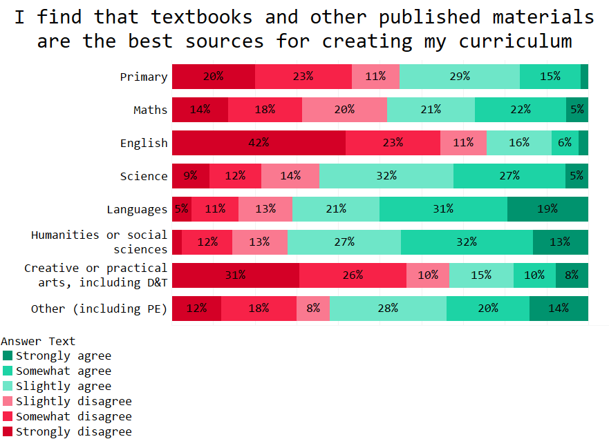This isn’t a new trend. Back in December when we asked about this, we found that English teachers are by far the least likely to use textbooks