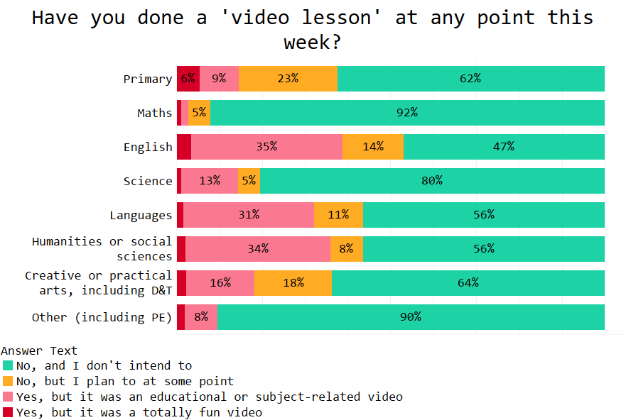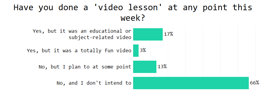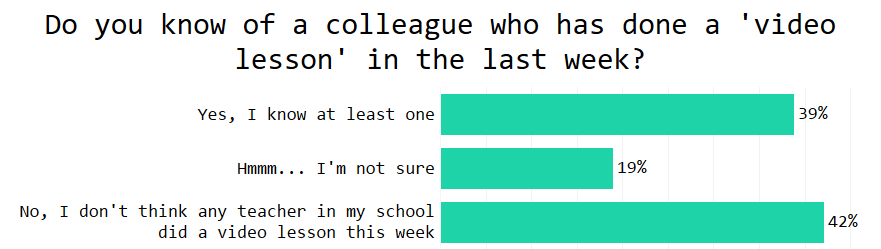 The annual moanathon about ‘video lessons’ has started on Twitter. The ‘never-vids’ have been complaining about the ‘here-kids-pick-a-dvd’ crowd. But how prevalent are ‘video lessons’ in the last few weeks of term?