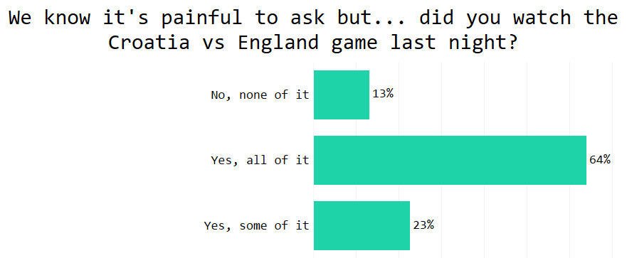 But did teachers also get more excited about the Cup as time went on? They did! For the quarter finals, only 79% of teachers watched along. By the semi-final that went up to 87%!