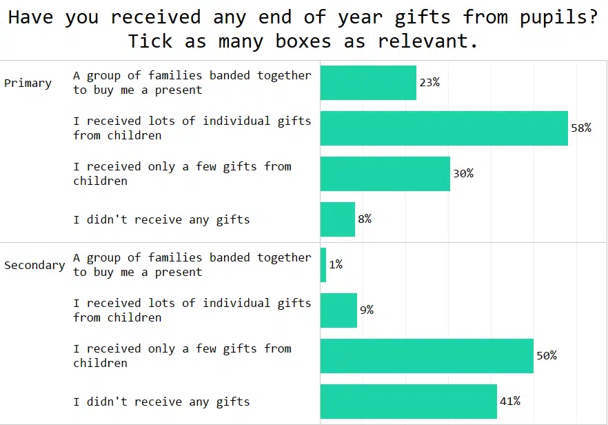 As it’s the end of year, and only a few schools are still clinging on this week, we asked about end-of-year gifts.
