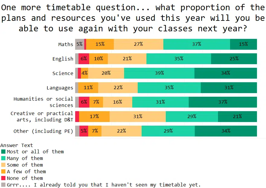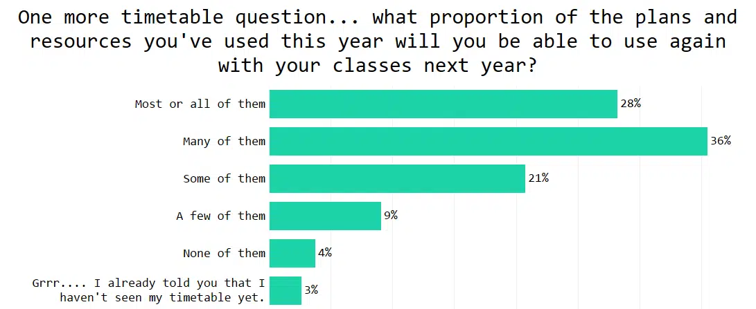 Most teachers now have their timetable for next year so we asked how many resources they are expecting to be able to reuse.