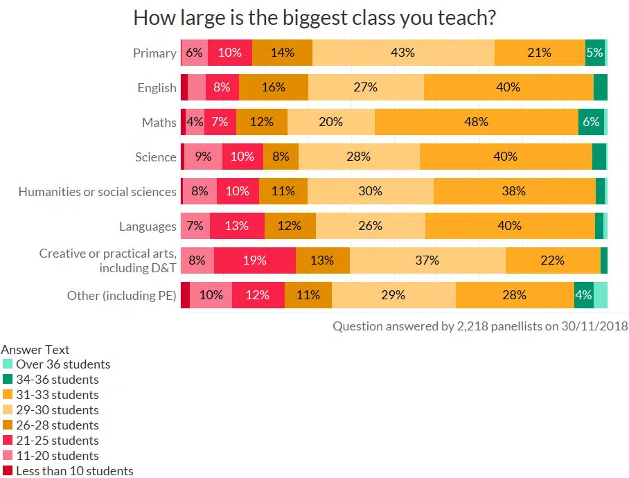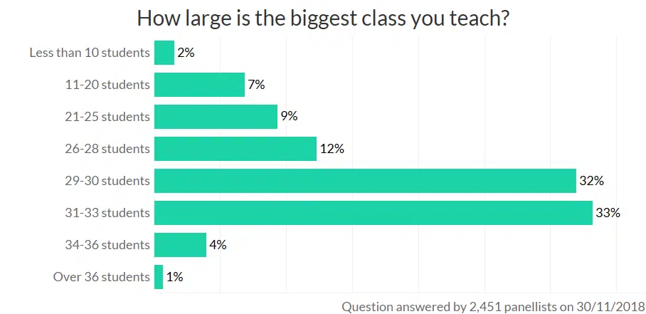Now, almost 4 in 10 teachers (38%) are teaching classes with more than 30 pupils. In fact
