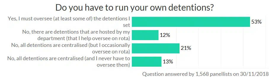 Running centralised detentions in secondary schools is generally seen as a good way to lower classroom teacher workload. So, we were amazed to see that half of our secondary teachers report they must oversee at least some of their own detentions they set.