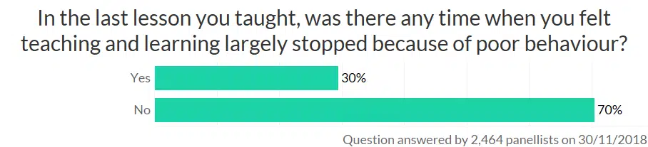 We are still watching disruption in class on a Friday afternoon. As with previous points in the year, we find around a third of classes (30%) were disrupted.