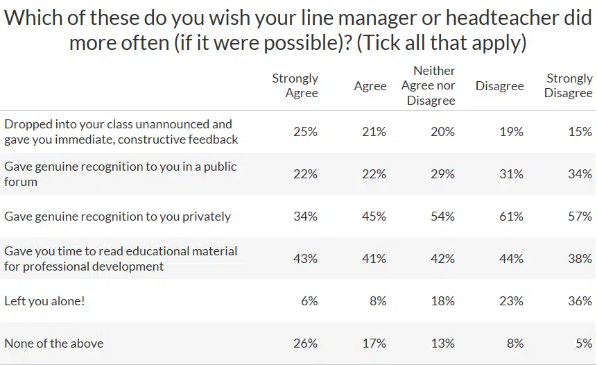 We asked teachers what they wished their line manager or head would do more often to make them happier.