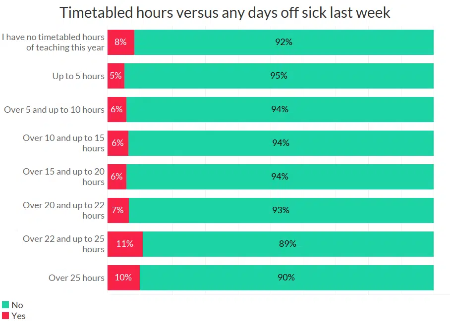 A teacher on Twitter asked us to find out if teachers with jam-packed timetables are more likely to take time off sick. If you have more teaching hours, the theory goes that you are more likely to stay home when feeling under par because it’s harder to battle through a full day.
