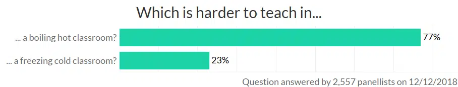 So, we asked again, now that it was very cold, and we found that number dropped down to 77% of teachers saying it’s harder to teach in a hot classroom