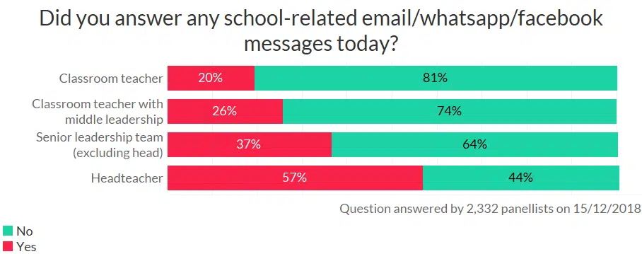 Unlikely! As you can see, heads and senior leaders spend more time dealing with emails and social media on the weekend than classroom teachers.