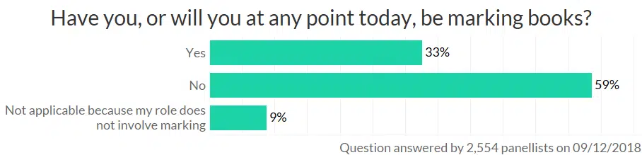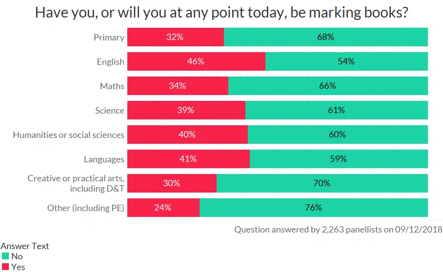 How likely you are to mark books changes by subject. Almost half of English teachers marked books this Sunday.