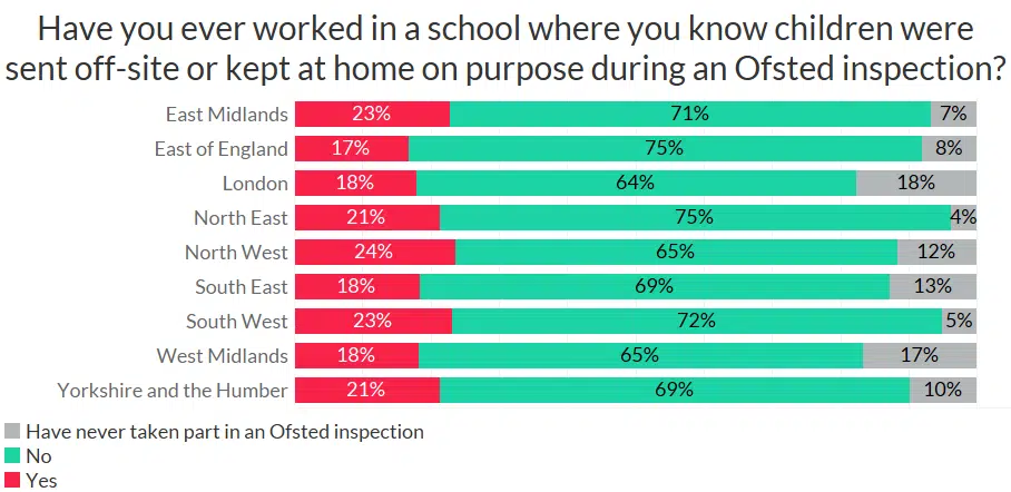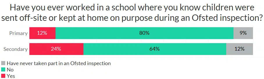 And a whopping 24% of teachers have worked in a school where children were sent off-site or kept at home on purpose during an Ofsted inspection: