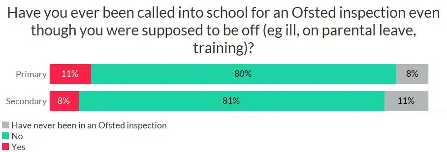 Also, 11% of primary teachers have been called into school during an Ofsted even though they were supposed to be away: