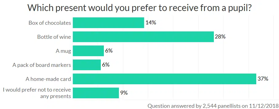 It’s that time of year when parents buy presents for teachers, but what do you all want? Home-made cards and bottles of wine!