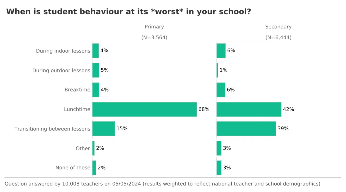 Why do you think behaviour is so poor at lunchtime? And how can schools improve it? Let us know what you think on socials or via the app 💬.
