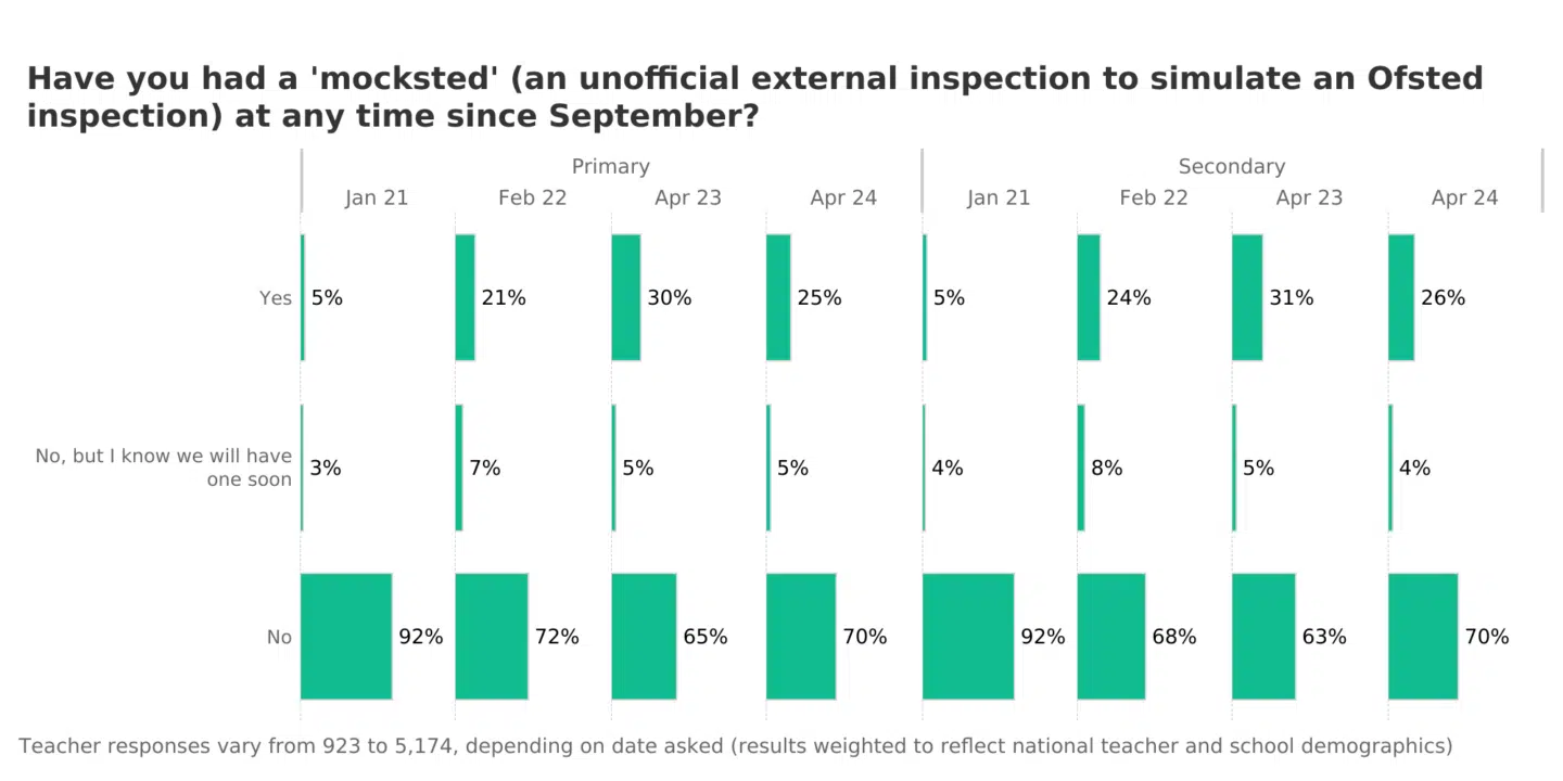 This year just 30% you have had, or will soon have a mocksted, a drop of 6 percentage points in secondary, and 5 percentage points in primary compared to last year.