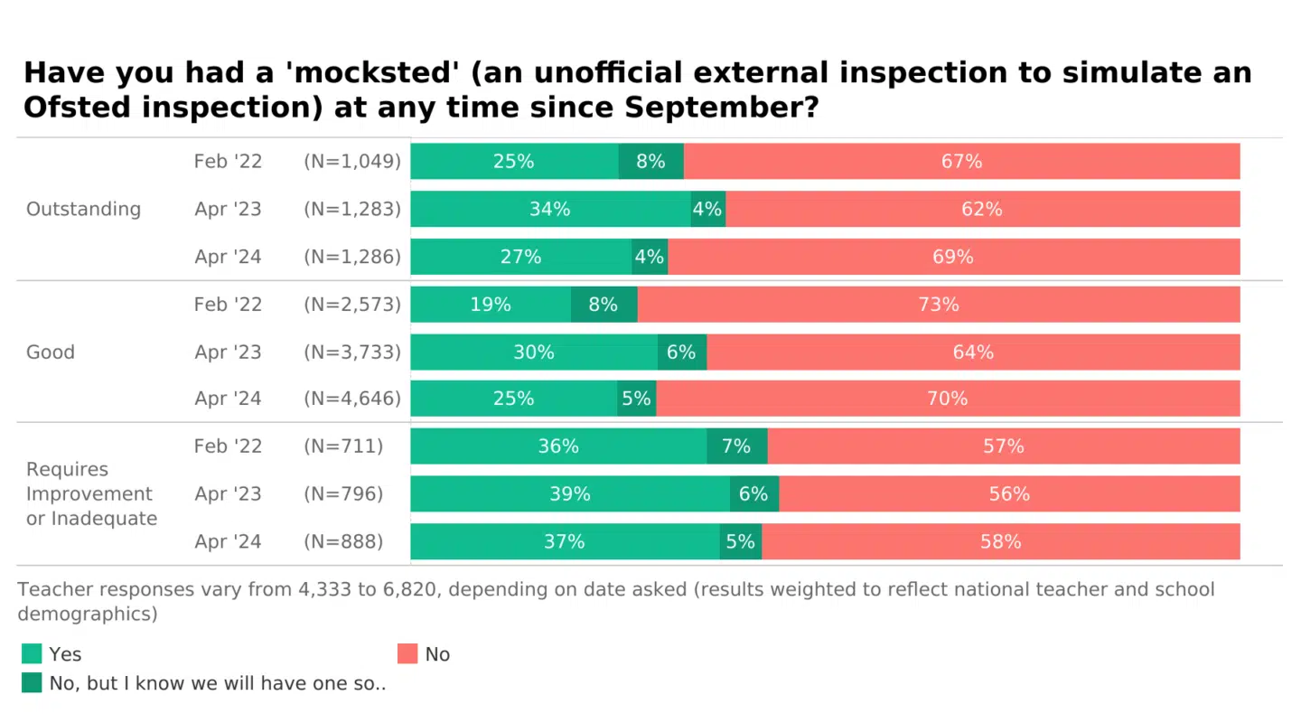 Those of you in RI of Inadequate schools are the most likely to have experienced a Mocksted this year (42%).
