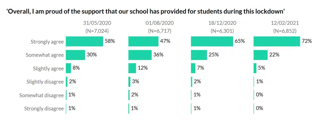 The good news of the terrible last term is that more of you than ever are proud of the way your school provided for students. The score jumped from 58% in May last year to 72% this half-term. ❤️
