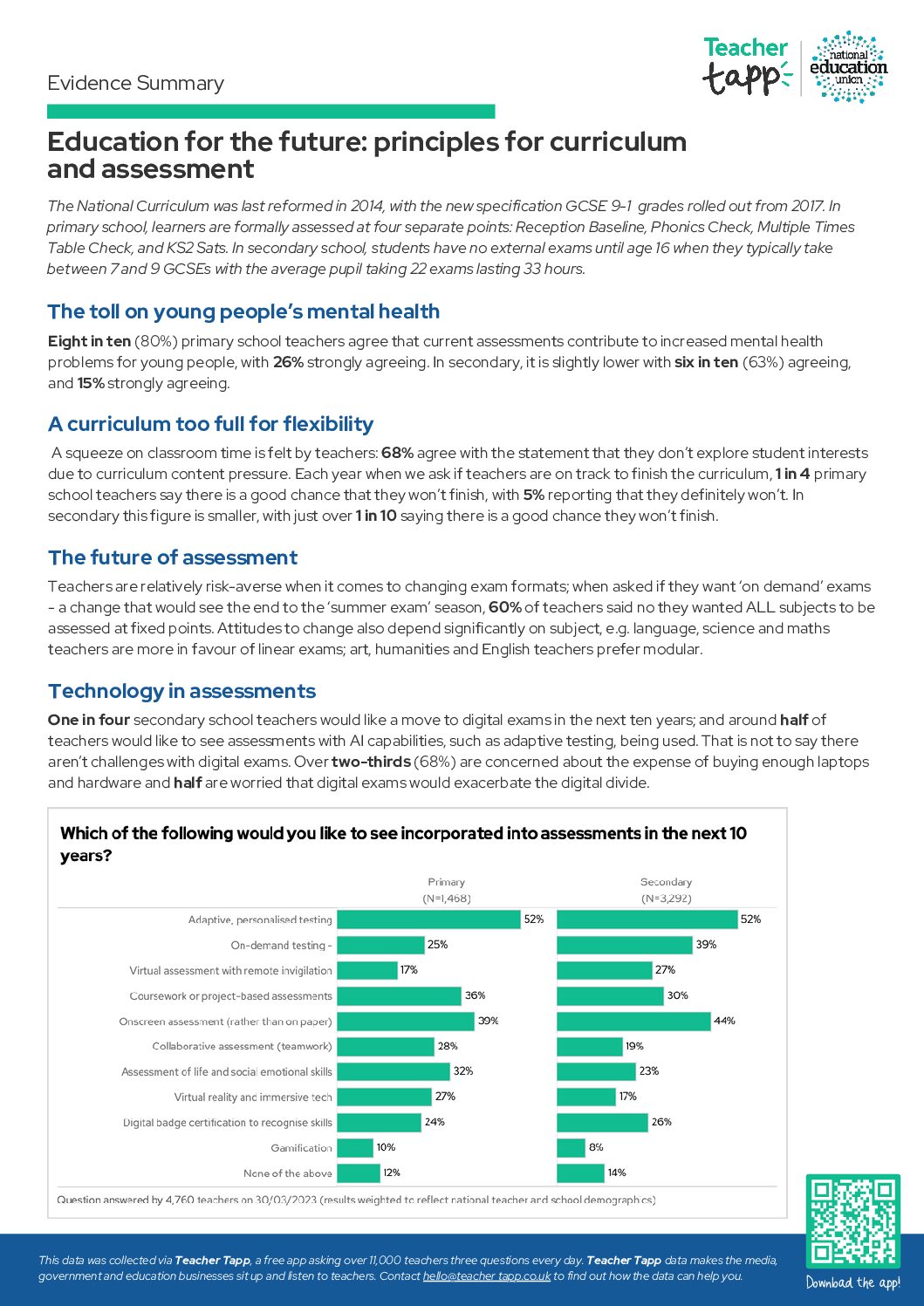 The National Curriculum was last reformed in 2014, with the new specification GCSE 9-1 grades rolled out from 2017. In primary school, learners are formally assessed at four separate points: Reception Baseline, Phonics Check, Multiple Times Table Check, and KS2 Sats. In secondary school, students have no external exams until age 16 when they typically take between 7 and 9 GCSEs with the average pupil taking 22 exams lasting 33 hours.