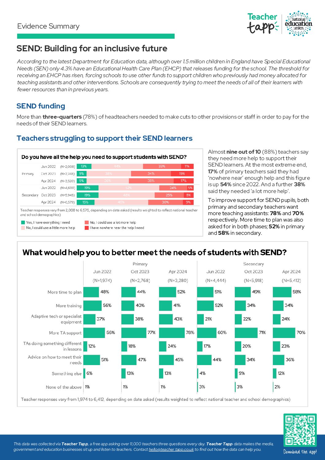 According to the latest Department for Education data, although over 1.5 million children in England have Special Educational Needs (SEN) only 4.3% have an Educational Health Care Plan (EHCP) that releases funding for the school. The threshold for receiving an EHCP has risen, forcing schools to use other funds to support children who previously had money allocated for teaching assistants and other interventions. Schools are consequently trying to meet the needs of all of their learners with fewer resources than in previous years.