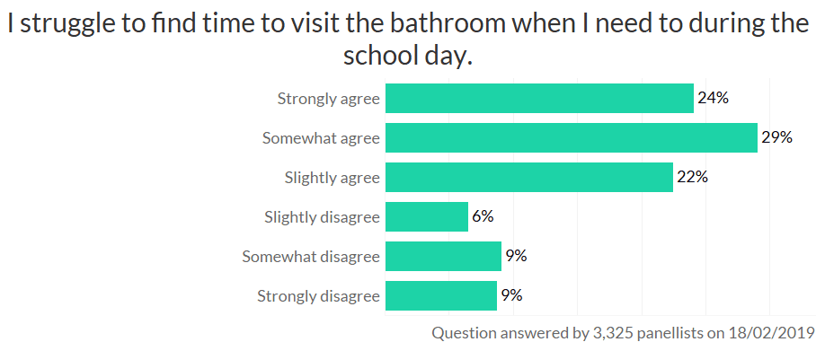 In teaching, you can’t go to the bathroom when you want. Is the struggle real? Yes, the majority of teachers say they struggle to find time to visit the bathroom as needed.