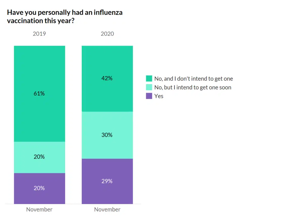 Despite the importance of teachers to society, your employers don’t usually offer an annual influenza vaccination. Last year, when we asked about flu shots, just 20% of you had one by November; this year the number has risen but only to 29%.