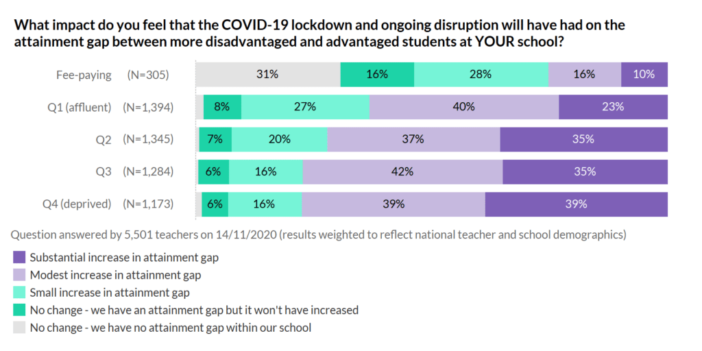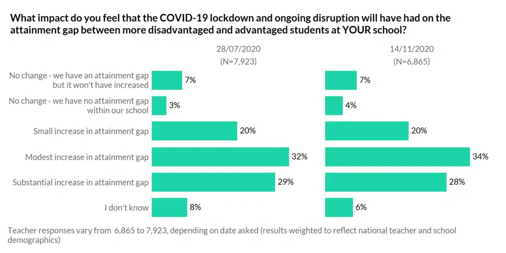 Have your views changed since last July? Back then we asked what you thought has happened to the attainment gap in your school. When we asked again last week your views were exactly the same. Most thought the achievement gap would increase, but only 3-in-10 thought there would be a substantial increase in the gap.