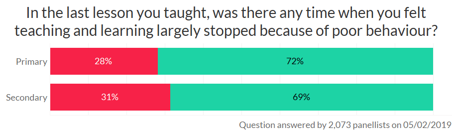 - Behaviour is an issue in around 30% of lessons – primary or secondary